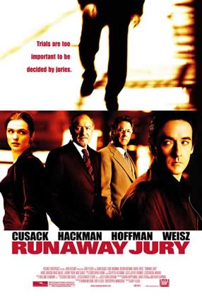 La giuria(Usa 2003) di Gary Fleder con Dustin Hoffman, Gene Hackman, John Cusack, Rachel WeiszGary Fleder dopo lesordio felice di Cosa fare a Denver quando sei morto, si era arenato nella medietà del thriller da bestseller (Il collezionista, Dont Say a Word). Non cera granché da sperare per lennesimo grisham movie, ma La giuria si rivela una gradita sorpresa e per meriti incrociati. John Grisham, di suo, tira fuori dal cilindro una storia che ci presenta delle figure piuttosto inquietanti (specialmente se realmente esistenti, ma cè da credere che lautore ne abbia parlato a ragion veduta) quali quelle dei manipolatori di giurie (il Rankin Fitch disegnato da Gene Hackman è un luciferino burattinaio), mentre il team di sceneggiatori ha azzeccato la giusta modifica impostando il plot su di una causa contro le industrie produttrici di armi (nel romanzo, alla sbarra sono portate le lobby del tabacco), il che, in tempi di guerra, non è cosa da poco. Cast da brividi ed un Fleder meno anonimo, tanto da riuscire a citare anche un classico del jury movie come La parola ai giurati. John Cusack che mette alle corde Cliff Curtis ci ha fatto ricordare il duello Henry Fonda/George C. Scott. (Rosario Gallone) |